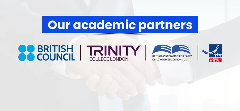 We have tie-ups with well-known and trusted academic organizations such as the British Council, Trinity College London, the British Association for Early Childhood Education, and the Preschool Learning Alliance. These collaborations help us provide world-class education and strong academic support to our students.